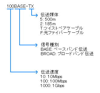 IEEE802.3uとして標準化。カテゴリー5以上のツイストペアケーブルとハブを使ったスター型で利用される。現在、もっとも普及しているイーサネットの規格である。 |